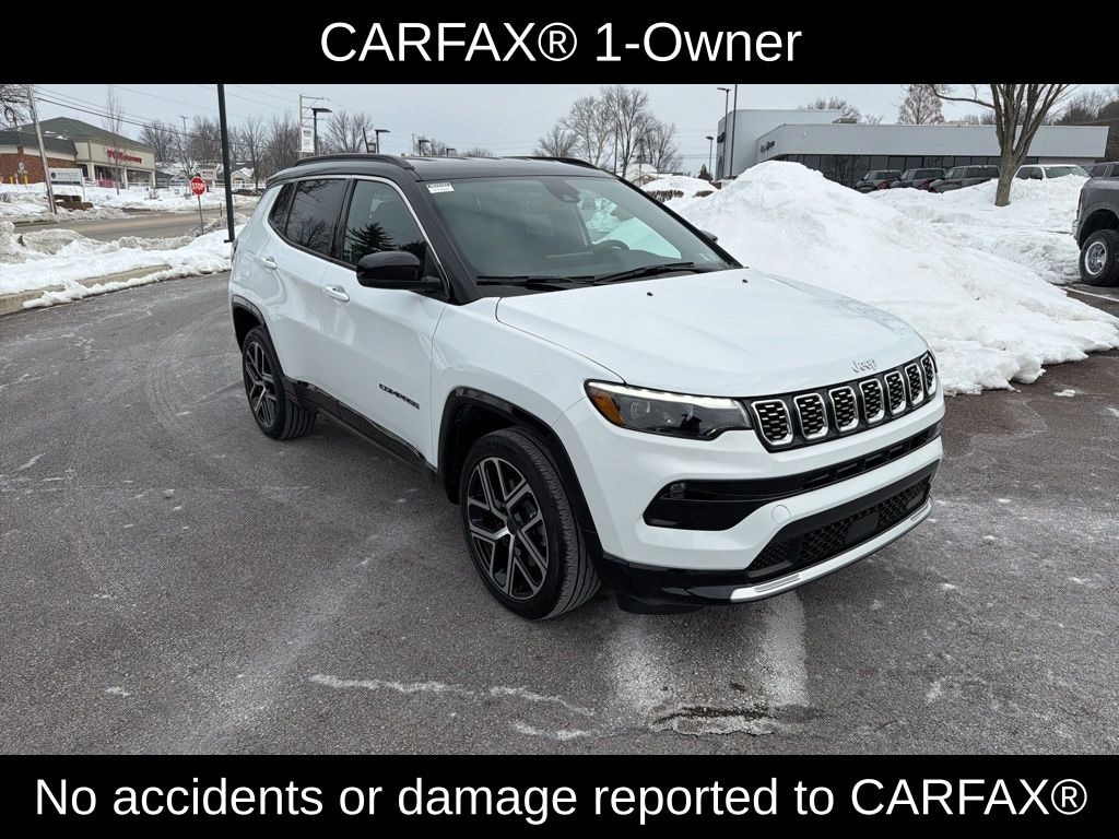 Clean CARFAX. CARFAX One-Owner. Certified. Bright White Clearcoat 2025 Jeep Compass Limited 4WD 8-Speed Automatic 2.0L I4 DOHC CERTIFIED, CLEAN CARFAX, FRESH OIL CHANGE, NEW PA INSPECTION, PROFESSIONAL DETAIL.