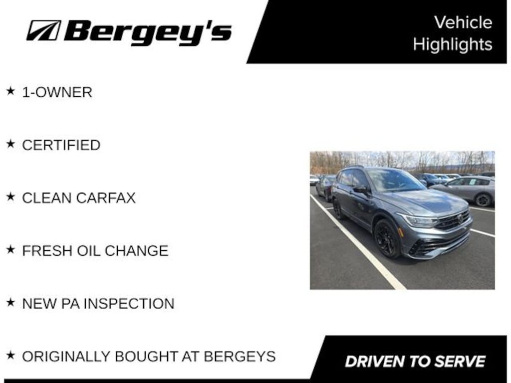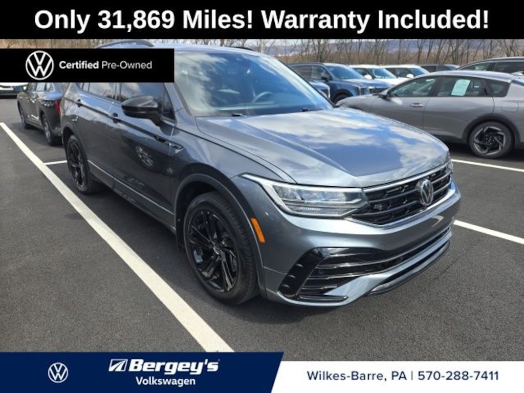Certified. Platinum Gray Metallic 2023 Volkswagen Tiguan 2.0T SE R-Line Black AWD 8-Speed Automatic with Tiptronic 2.0L TSI DOHC 1-OWNER, CERTIFIED, CLEAN CARFAX, FRESH OIL CHANGE, NEW PA INSPECTION, ORIGINALLY BOUGHT AT BERGEYS, AWD.