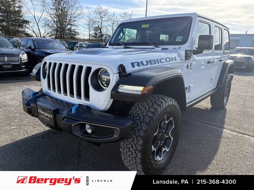 2022 JEEP WRANGLER UNLIMITED RUBICON 4XE HARD TOP 2.0L 4WD W/ COLD WEATHER PKG! ONE OWNER! CLEAN CARFAX! ORIGINAL MSRP $67,665! HEATED FRONT SEATS, HEATED STEERING WHEEL, APPLECARPLAY! BALANCE OF FACTORY WARRANTY! PA State Inspection & First Oil Change At Bergeys! Bright White Exterior, Black Leather Interior. Vehicle Features: 2.0L I4 DOHC DI TURBO PHEV Engine, 8-Speed Automatic Transmission, 4 Wheel Drive, Heated Front Seats, Remote Start System, Heated Steering Wheel, Leather Wrapped Steering Wheel, Black 3 Piece Hard Top, Freedom Panel Storage Bag, Rear Window Wiper/Washer/Defroster, 17 x 7.5 Machined Wheels w/ Black Pockets, Full-Size Spare Tire, Mold-In-Color Rubicon Highline Flare, 2-Front And 1-Rear Tow Hooks, Power-Heated Mirrors, Automatic Headlamps, Tire Pressure Monitoring Display, 8.4 Radio And Premium Audio Group, Navigation w/ 8.4 Display, Apple CarPlay, Google Android Auto, 4G LTE Wi-Fi Hot Spot, Integrated Voice Command, Satellite Radio Ready, 7 TFT Color Cluster Display, Premium Wrapped Steering Wheel, Full Function Media Hub w/ 2 Charge Only USB Ports, 115-Volt Auxiliary Power Outlet, Rear 60/40 Folding Seat, Ambient LED Interior Lighting, Air Conditioning w/ Automatic Temperature Control, Battery Charge Indicator, Tru-Lok Front And Rear Axle, 4:10 Rear Axle Ratio, Rock Protection Sill Rails, Front Disconnecting Stabilizer Bar, Trailer Sway Damping, 600-Amp Maintance Free Battery, Selec-Speed Control, Electronic Stability Control, Power Locking Fuel Filler Door, Advanced Multistage Front Airbags, Supplemental Front Seat Mounted Side Airbags, Automatic Dimming Rear View Mirror, Tinted Windshield Glass, Front Door Passive Entry And Lock, Universal Grage Door Opener. Financing Available! Extended Service Contract Options Available! Please call or email to confirm vehicle availability. Check out our website for the complimentary Carfax report!